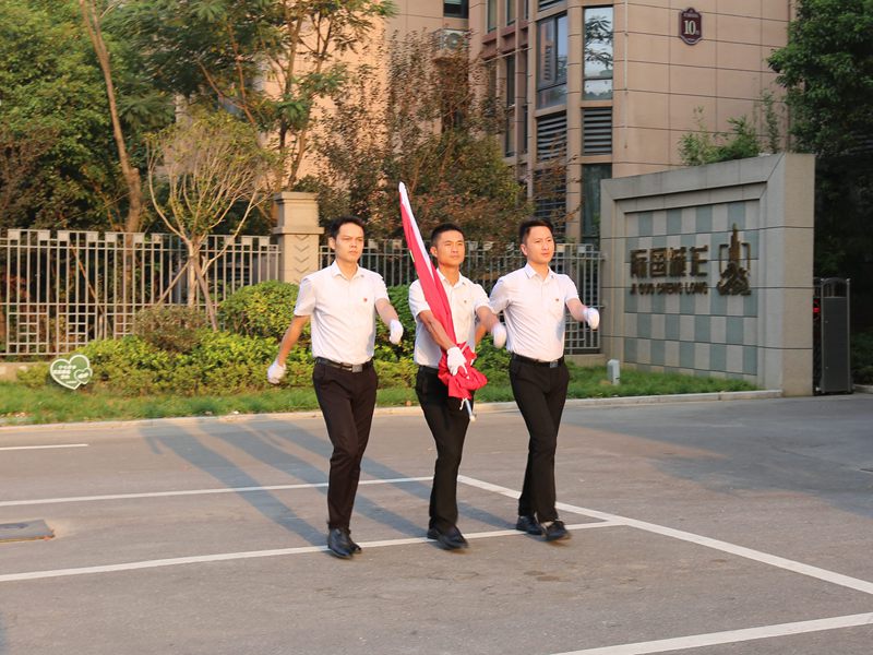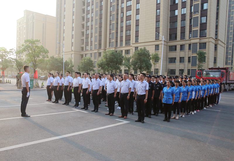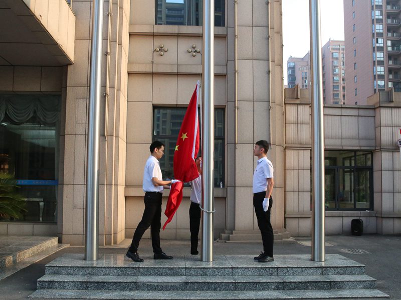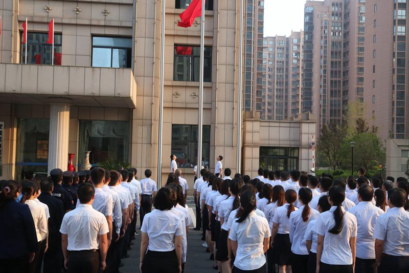 清晨6時40分,3位身姿挺拔的旗手,護衛著鮮艷的五星紅旗,邁著整齊矯健的步伐步入升旗臺,在雄壯的國歌聲中,鮮艷的五星紅旗冉冉升起,參加儀式的全體職工肅然站立,注目國旗,向偉大祖國致以崇高的敬意和美好祝福。