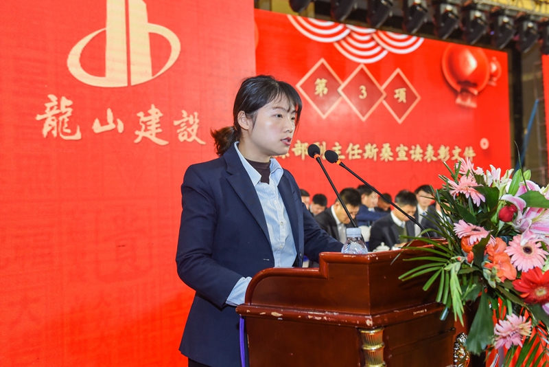 大會在莊嚴嘹亮的國歌聲中拉開帷幕。會上,集團公司副董事長朱遠飛就2019年生產經營情況和2020年工作計劃向大會作報告,他指出,過去的2019年是不平凡的一年,成功和汗水都已經成為歷史;即將到來的2020年,希望全體龍山人持之以恒抓好《董事長關于項目管理八大要點解讀》的貫徹落實,以2019年度的工程成績為新的起點,進一步鞏固和夯實發展基礎,搶抓黨中央提出的一系列利好的政策機遇,謀求集團公司新的發展。