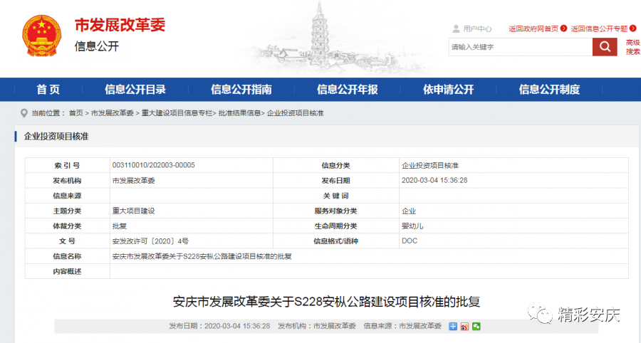據(jù)悉,2020年3月4日,安慶發(fā)展和改革委員會(huì)發(fā)布S228安樅公路建設(shè)項(xiàng)目核準(zhǔn)的批復(fù)的公告。