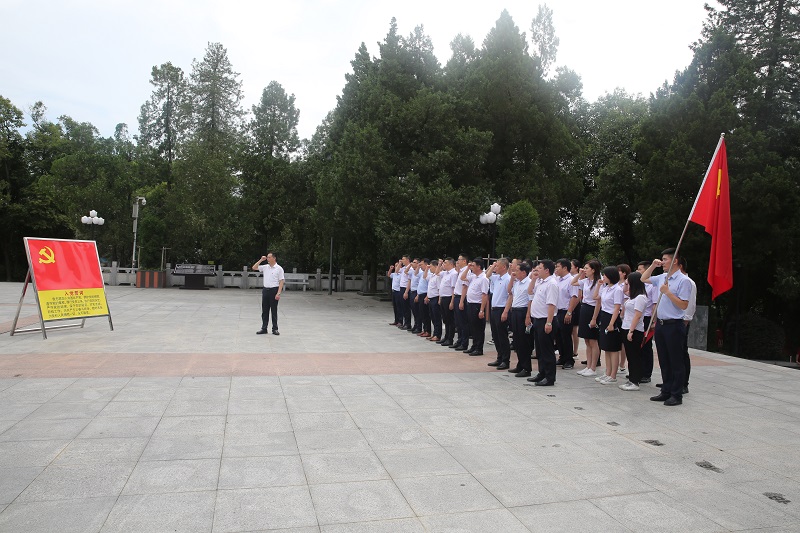 步履鏗鏘,砥礪前行。紅軍廣場(chǎng)上,全體黨員同志認(rèn)真聆聽講解,拾級(jí)而上,仰望革命烈士紀(jì)念塔,追尋紅色足跡,緬懷革命先烈。烈士紀(jì)念塔上,劉伯承元帥親筆手書的“燎原星火”肅然醒目,仿佛看見了往日的“星星之火”呈現(xiàn)的燎原之勢(shì)。墓碑上的紅星,仿佛用無(wú)聲的語(yǔ)言述說(shuō)著無(wú)數(shù)先烈們的初心和使命。全體人員向革命烈士默哀鞠躬。面對(duì)鮮紅的黨旗,在黨總支書記汪小苗的帶領(lǐng)下總支全體黨員高舉右拳,重溫入黨誓詞。