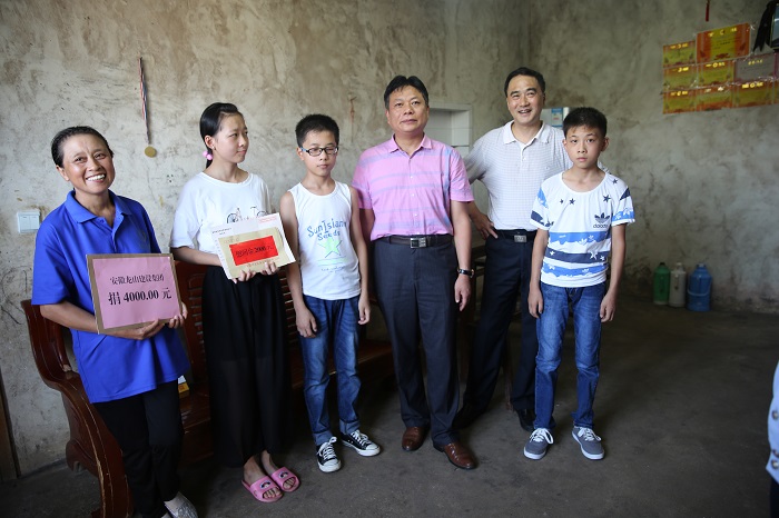 8月18日,董事長汪小苗委托安慶市華翔置業有限公司副董事長汪雙四和黨支部副書記沈紹華為宜秀區楊橋村貧困大學生送去助學金。下午16時許,一行人隨同宜秀公安分局局長鮑強來到貧困學生江榮的家中,親自將4000元助學金送到她的手中,并詳細了解了她的生活和學習情況,鼓勵她勤奮學習,早日成才,用好的成績回報父母和所有關心他們的人。