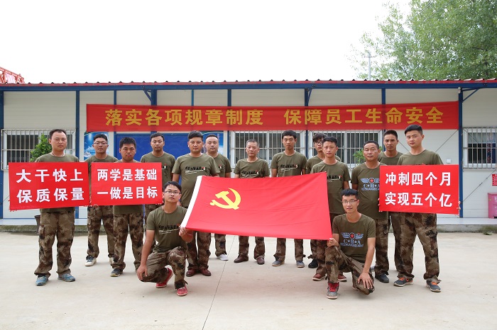 目前,天晴少雨,正是施工的黃金季節。在定長項目辦的組織下,各標段開展了“沖刺四個月,實現五個億”勞動競賽活動,掀起了施工大干的熱潮。結合“兩學一做”活動,項目部組建了一支由黨員、入黨積極分子組成的“黨員突擊隊”,集團公司總經理鄭生華親自掛帥,充分發揮領導干部率先垂范、黨員先鋒模范作用,大干快上,保質保量,確保工程進度有序推進。