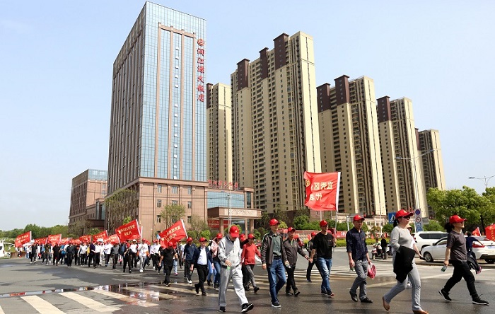 為了慶祝中國共產黨百年華誕,進一步倡導“綠色、低碳、環保”科學健康的生活理念,4月30日下午,安慶市宜秀區總工會、中共宜秀區直工委聯合主辦 “同心向黨,愛我北城”為主題的安慶市宜秀區“龍城天悅杯”健步行活動,中安龍山建設集團承辦了此次活動。區人大副主任、工會主席王瓊、副區長王曉峰、區政協副主席唐克志出席開幕儀式,區人大副主任、工會主席王瓊致開幕辭。受集團公司董事長委托,總經理陳思建代表集團致歡迎辭,副區長王曉峰宣布健步行活動正式開始。宜秀區政府52個機關單位近千名干部職工參加了此次活動。