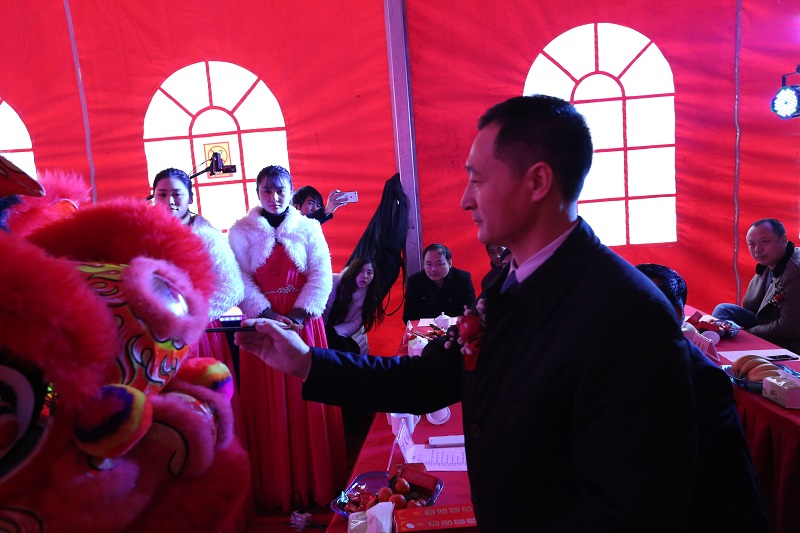 安徽龍山建設(shè)集團(tuán)董事長(zhǎng)汪小苗為獅子醒眼點(diǎn)晴