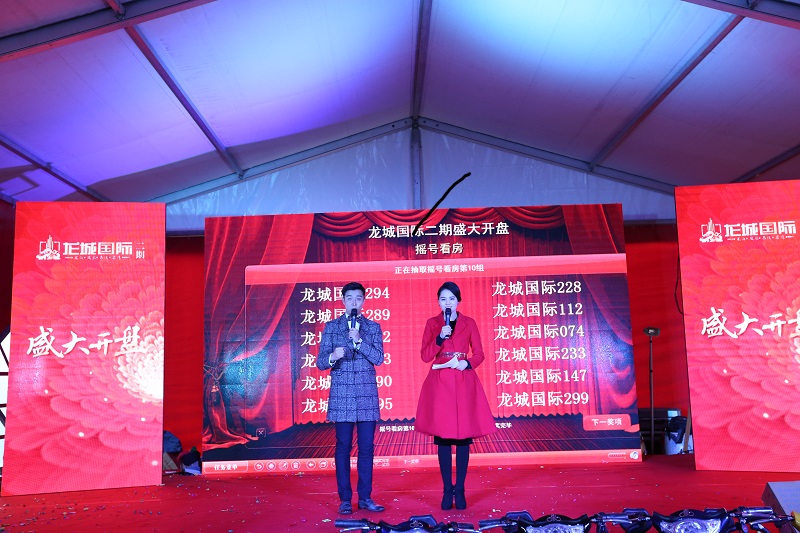 1月22日一早,許多買(mǎi)房客戶(hù)早早等候在營(yíng)銷(xiāo)中心,只為能買(mǎi)到心儀的房子。9點(diǎn)58分,開(kāi)盤(pán)儀式在《盛世龍鼓》節(jié)日中拉開(kāi)帷幕,集團(tuán)公司董事長(zhǎng)汪小苗同志宣布“龍城國(guó)際二期正式開(kāi)盤(pán)”后,開(kāi)盤(pán)儀式正式開(kāi)始,本次開(kāi)盤(pán)以節(jié)目表演與隨機(jī)選號(hào)看房的方式穿插進(jìn)行,每個(gè)選到號(hào)的客戶(hù)都雀躍不已,迫不及待地來(lái)到選房區(qū)進(jìn)行選房。