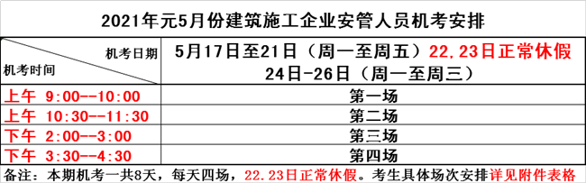 2021年5月份安慶市建筑施工企業安管人員機考場次安排