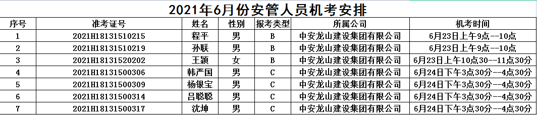 2021年6月份安慶市建筑施工企業(yè)安管人員機(jī)考場(chǎng)次安排