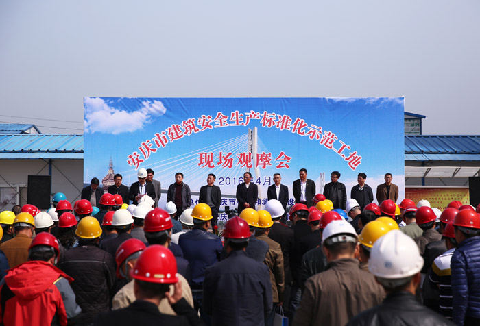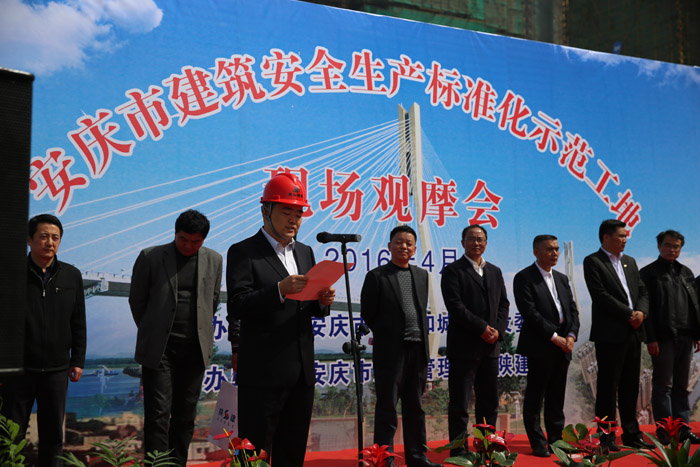 4月8日上午,市住房和城鄉(xiāng)建設(shè)委員會在安慶市新河水系整治安置小區(qū)二標(biāo)段項目現(xiàn)場召開“安慶市建筑安全生產(chǎn)標(biāo)準(zhǔn)化示范工地現(xiàn)場觀摩會”。由龍山建司總經(jīng)理朱遠飛和各項目部負責(zé)人、安全科、質(zhì)檢科、工程科等15人組成的學(xué)習(xí)交流小組參加了觀摩會。