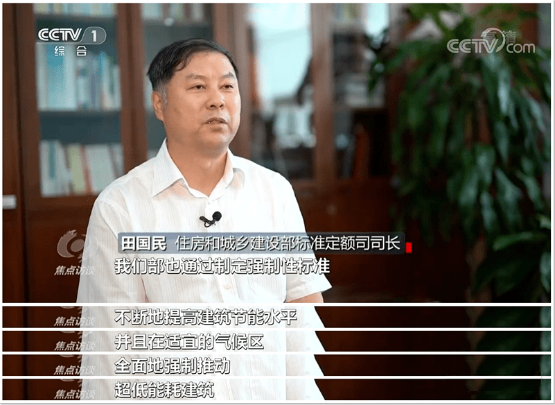2021年8月24日,CCTV1臺(tái)《焦點(diǎn)訪談》播出《能耗超低,建筑變綠》專題,本期節(jié)目是配合全國(guó)節(jié)能宣傳周和8月25日全國(guó)低碳日的主題宣傳節(jié)目。從試點(diǎn)以來(lái),我國(guó)超低能耗建筑已經(jīng)走過(guò)10年時(shí)間,響應(yīng)“3060”雙碳目標(biāo),我國(guó)超低能耗建筑已經(jīng)站在新的起點(diǎn),未來(lái)將快速推廣,讓更多的人居住生活在超低能耗建筑中。