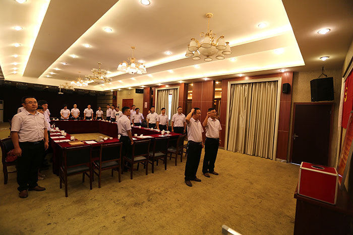 學習結束后,副書記沈紹華宣讀了中共安慶市宜秀區大龍山鎮黨委關于周龍模同志轉為預備黨員的批復,在組織委員斯華琴的帶領下,周龍模同志在黨旗前莊嚴宣誓,并向黨組織作出承諾。