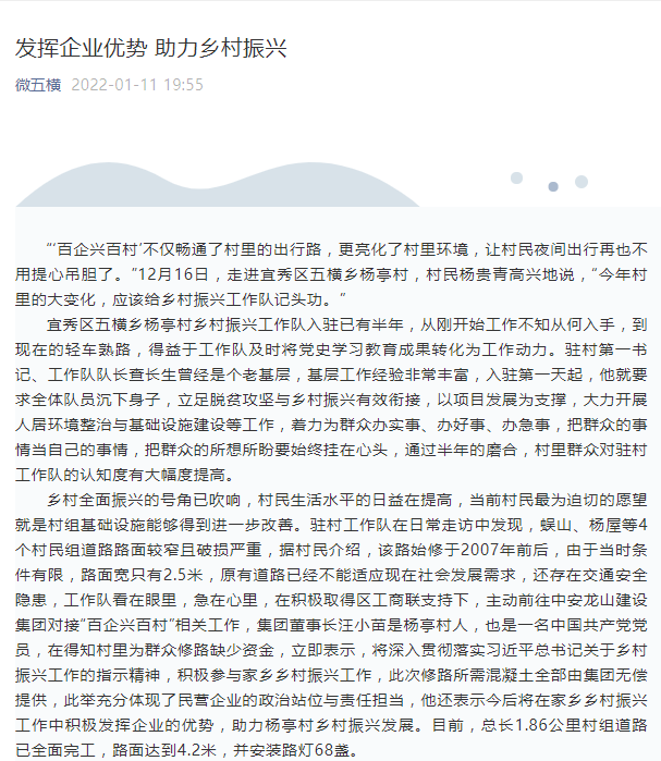 中安龍山建設(shè)集團(tuán):發(fā)揮企業(yè)優(yōu)勢 助力鄉(xiāng)村振興