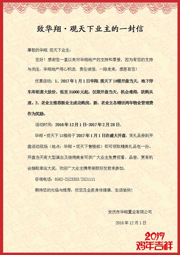 華翔·觀天下的動態(tài)一直都備受樅陽人們的關(guān)注,經(jīng)過了長時間的精心準備,元月1日,華翔·觀天下將盛大開盤。