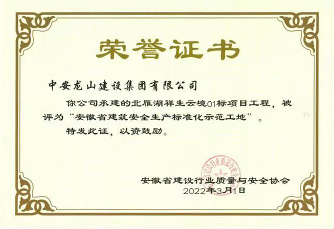 近日,集團(tuán)公司項(xiàng)目建設(shè)再傳佳音,由集團(tuán)公司承建的北雁湖祥生云境01標(biāo)項(xiàng)目工程被評(píng)為“安徽省建筑安全生產(chǎn)標(biāo)準(zhǔn)化示范工地”。
