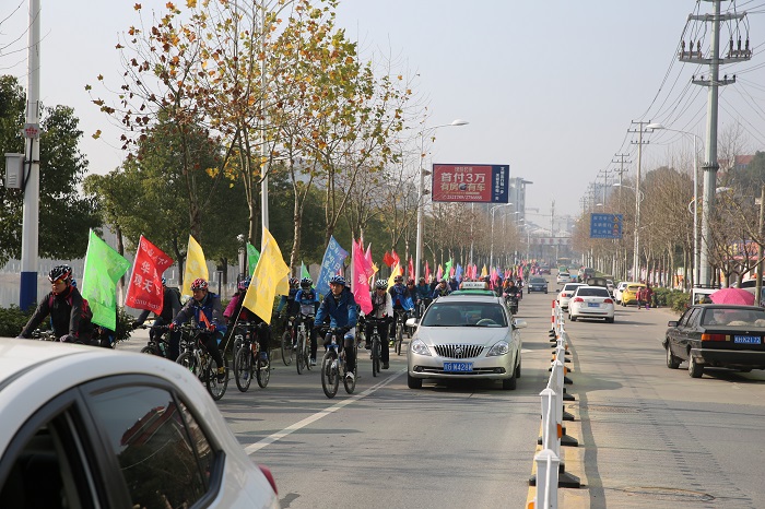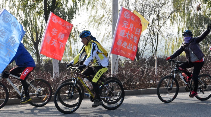 12月31日上午,華翔地產邀請安慶騎行協會組織百人騎行。100多位自行車愛好者組成的車隊聚集在銅陵市樅陽縣街頭,每輛自行車上后載華翔·觀天下“元月1日盛大開盤”的宣傳旗幟,將進行全長20公里環繞樅陽縣城的騎行活動,成為樅陽縣街道上一道亮麗的風景線,引起廣大市民的圍觀。
