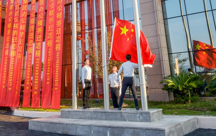 華廳集瑞,旭日臨門(mén)。11月12日,集團(tuán)公司迎來(lái)了又一發(fā)展新里程,經(jīng)廣大員工的共同努力,集團(tuán)公司辦公樓順利喬遷新址并舉行了隆重的喬遷儀式。早上七時(shí)三十分,在清晨一縷縷金色陽(yáng)光的照耀下,在雄壯嘹亮的國(guó)歌聲中,莊嚴(yán)的五星紅旗在中安龍山建設(shè)集團(tuán)辦公樓前冉冉升起。集團(tuán)公司董事長(zhǎng)汪小苗攜高層管理人員、各單位、項(xiàng)目負(fù)責(zé)人出席了集團(tuán)公司辦公樓喬遷儀式,共同見(jiàn)證這一激動(dòng)人心的歷史性時(shí)刻。
