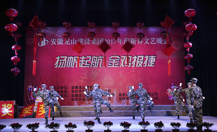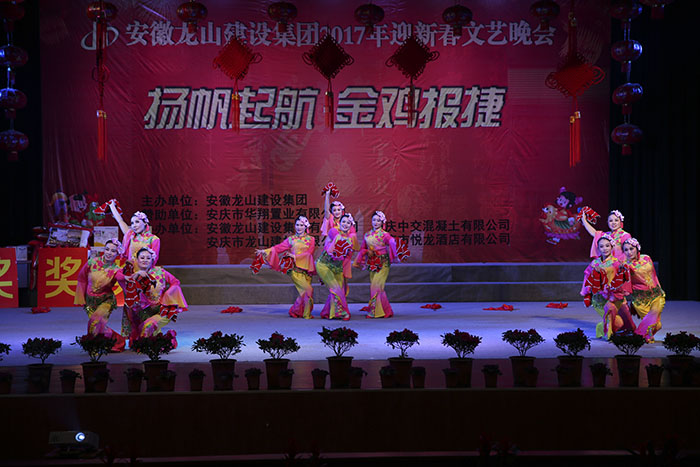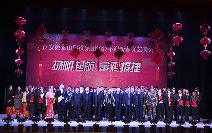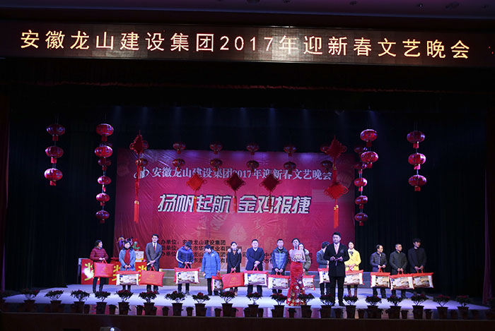 龍飛鳳舞賀新年,金雞納福降人間。2017年1月25日晚,由安慶市華翔置業有限公司贊助、安徽龍山建設集團主辦的“2017年迎新春文藝晚會”在安徽黃梅戲藝術職業學院隆重舉行,公司領導及全體同事歡聚一堂、共同慶賀,晚會在集團公司汪董事長新年賀詞中拉開序幕。