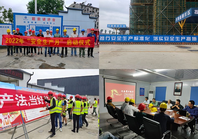 今年6月是全國第21個 “安全生產月”,為進一步增強安全生產意識,營造安全生產氛圍,集團公司各在建項目陸續開展了以“遵守安全生產法,當好第一責任人”為主題的安全生產月活動,并成立了以集團副董事長朱遠飛為組長、副總經理朱順、江龍軍為副組長、各職能部室及項目部為成員的活動領導小組,以活動促安全,以安全促生產。