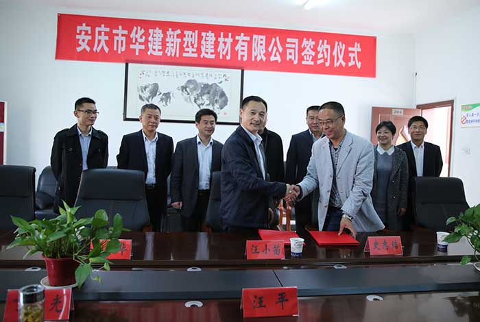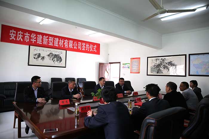 4月8日上午,安慶市華建新型建材有限公司與懷寧縣石鏡鄉人民政府合作項目簽約儀式在石鏡鄉政府會議室舉行。集團公司董事長汪小苗、總經理鄭生華、副總經理程志、華建公司副總經理何紅忠與懷寧縣人大副主任汪平、石鏡鄉黨委書記丁霞光、鄉長史志結等領導出席簽約儀式。