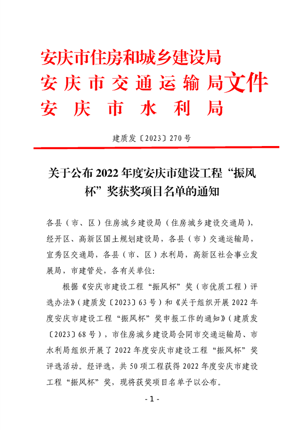 近日,2022年度安慶市建設工程“振風杯”獲獎項目名單公布,中安龍山建設集團自主開發(fā)建設的龍城天悅一期項目名列其中,喜獲殊榮。
