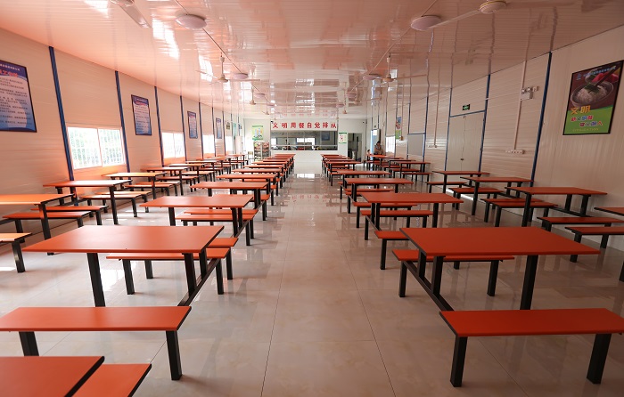 龍城國際項目部自組建以來,始終把職工的利益放在首位,努力營造良好的工作、生活環境。近日,龍城國際項目部職工食堂正式營業,極大地改善了職工的就餐質量和環境。龍城國際項目部職工食堂自4月初開始籌建,總占地面積約1.1畝,累計總投資約達30萬。新建食堂設備設施齊全,采用現代化的就餐桌椅,就餐場所最多可容納百余名員工同時就餐。食堂內墻懸掛員工守則、文明標語等,員工在就餐的同時,還可以熟悉公司文化、制度、員工守則。項目部專門聘請了專業廚師,為大家供應營養搭配合理、色香味俱全的佳肴。
