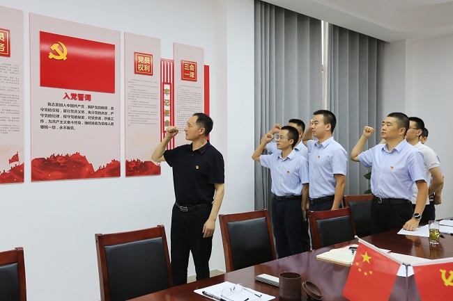 會議嚴格按照黨員發展流程,就五名預備黨員轉正相關事宜進行了討論,最終以不記名投票的方式,一致同意該五名同志按期轉為中共正式黨員。在各支部書記的帶領下,五名新黨員面向黨旗莊嚴宣誓,發出了為共產主義奮斗終身的錚錚誓言。