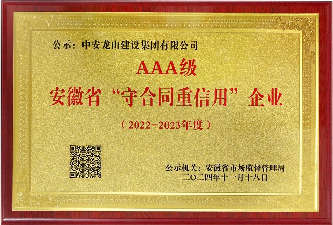 近日,安徽省市場監(jiān)督管理局公示2022-2023年度安徽省“守合同重信用”AAA級企業(yè)名單,集團公司榜上有名,獲此殊榮。