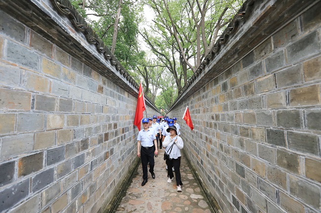 踏入六尺巷,腳下石板蜿蜒,兩側(cè)高墻肅立。清代名臣張英以“千里修書只為墻,讓他三尺又何妨”的胸襟化解鄰里紛爭(zhēng)的典故,讓黨員們對(duì)克己奉公有了更加深刻的感悟;大家駐足“懿德流芳”石牌坊前,從張氏家族“敬慎廉儉、清正守節(jié)”的家風(fēng)中,感悟禮讓文化的精神內(nèi)涵,汲取修身正己的精神養(yǎng)分。