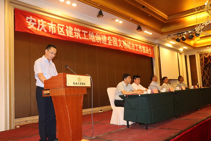 7月25日上午,安慶市區(qū)建筑工地創(chuàng)建全國文明城市工作推進(jìn)會在天域花園酒店舉行。會議由市住房城鄉(xiāng)建設(shè)委副主任黃金竹主持。市住房城鄉(xiāng)建設(shè)委主任鄭家齊,市紀(jì)委、市文明辦、市城管局、市重點工程建設(shè)局、市環(huán)保局大氣辦、各區(qū)城鄉(xiāng)建設(shè)局、在建項目負(fù)責(zé)人等參加此次會議,集團(tuán)公司董事長汪小苗受邀參加會議并作代表發(fā)言。