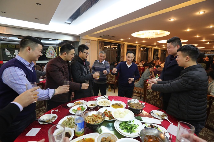 晚上18時,悅龍酒店大廳里其樂融融,充滿了節日的喜慶氣氛,所有員工把酒言歡,頻頻舉杯,為公司祝福。汪董事長攜鄭生華總經理向全體員工敬酒,對大家表示節日的祝賀與問候,感謝大家一年來的共同努力。