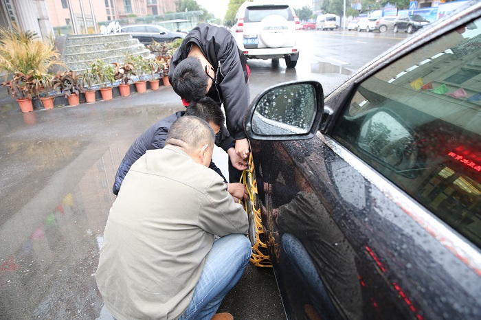 集團公司小車班開展防滑鏈安裝演練