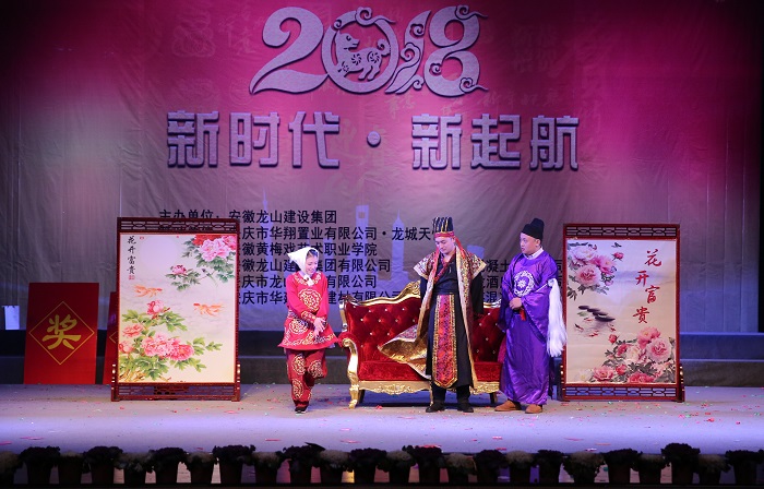 律回春暉漸,萬象始更新。2月4日晚,由安慶市華翔置業(yè)有限公司贊助、安徽龍山建設(shè)集團(tuán)主辦的“2018年迎新春文藝晚會”在安徽黃梅戲藝術(shù)職業(yè)學(xué)院隆重舉行,公司領(lǐng)導(dǎo)及全體員工歡聚一堂、共同慶賀。