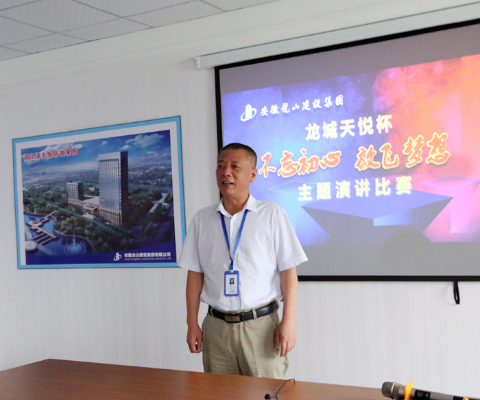 為了進一步促進員工交流,提升員工素質,豐富業余文化生活,弘揚積極向上的企業精神,7月30日下午,集團公司在龍城天悅項目部開展以“不忘初心,放飛夢想”為主題的演講比賽。集團公司副董事長鄭生華、朱遠飛等領導作為賽事評委出席了本次活動。