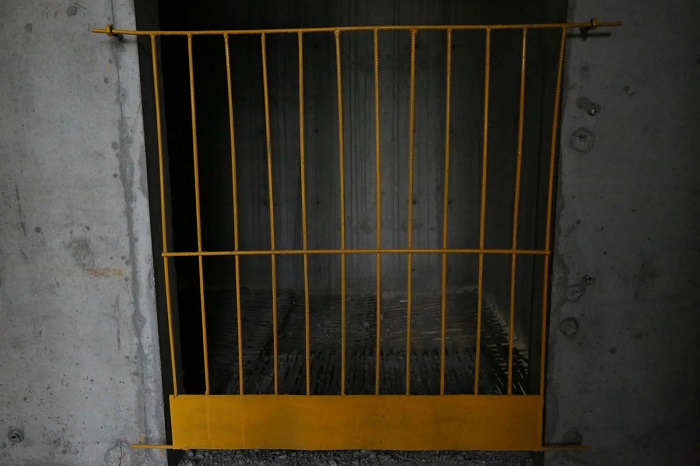 電梯井防護—電梯井內采用鋼筋網全覆蓋,立面用定型化防護門封閉