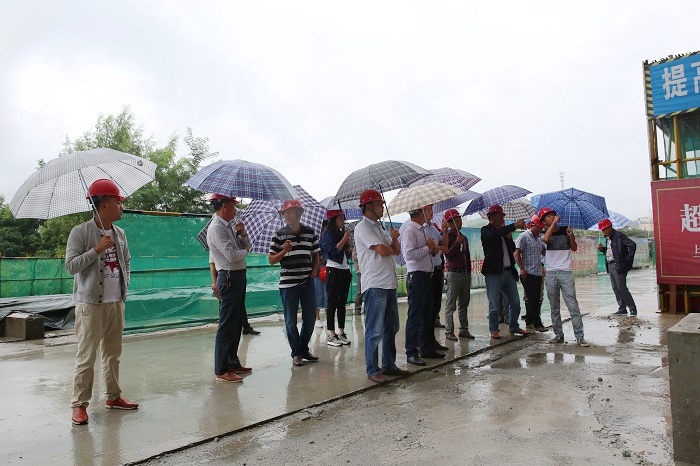 圖為參加培訓人員在龍城國際項目部施工現(xiàn)場觀摩學習